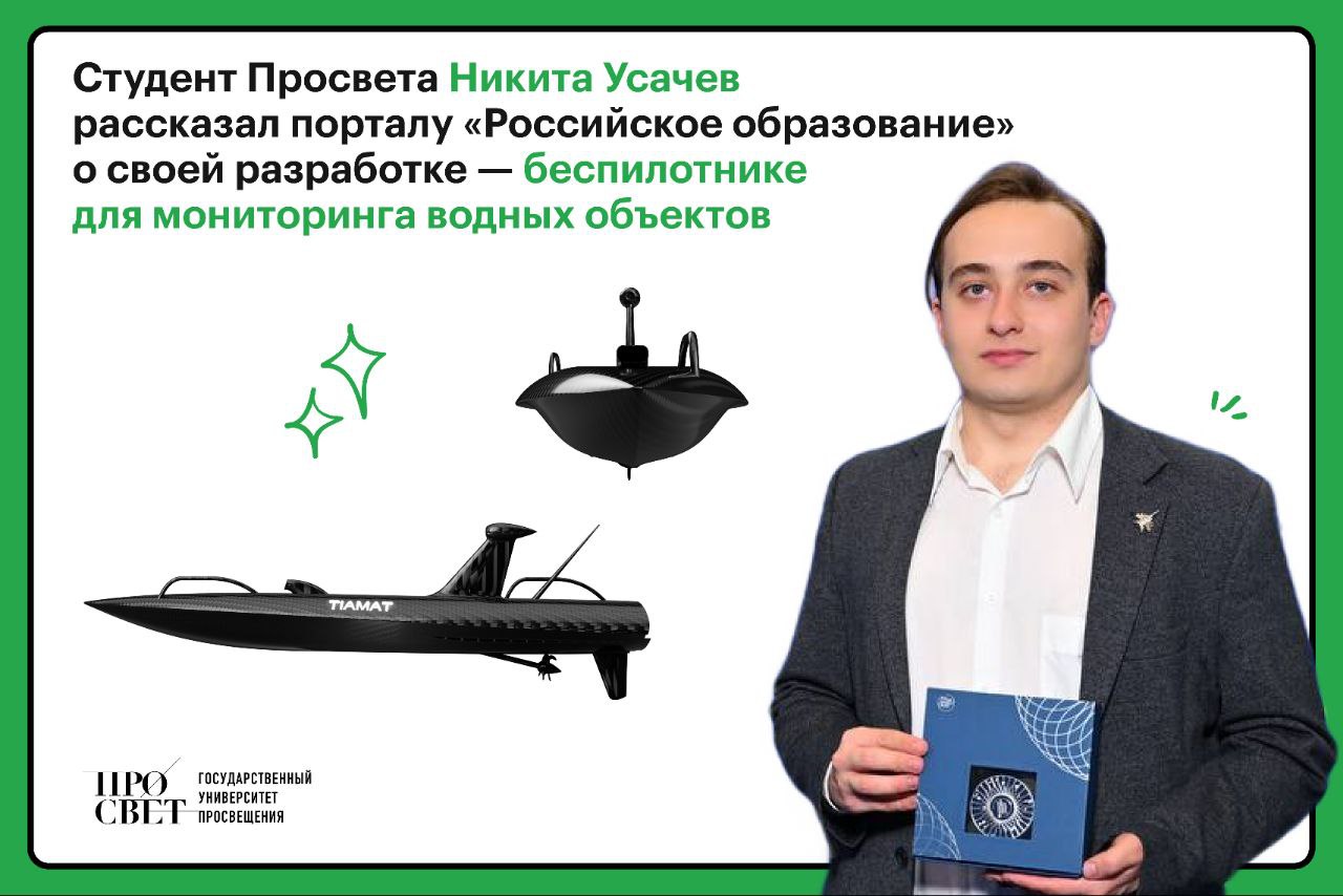 Минпросвещения России, Никита Усачев создал беспилотный надводный аппарат «Тиамат». Изобретение позволит автоматизировать мониторинг водных объектов!