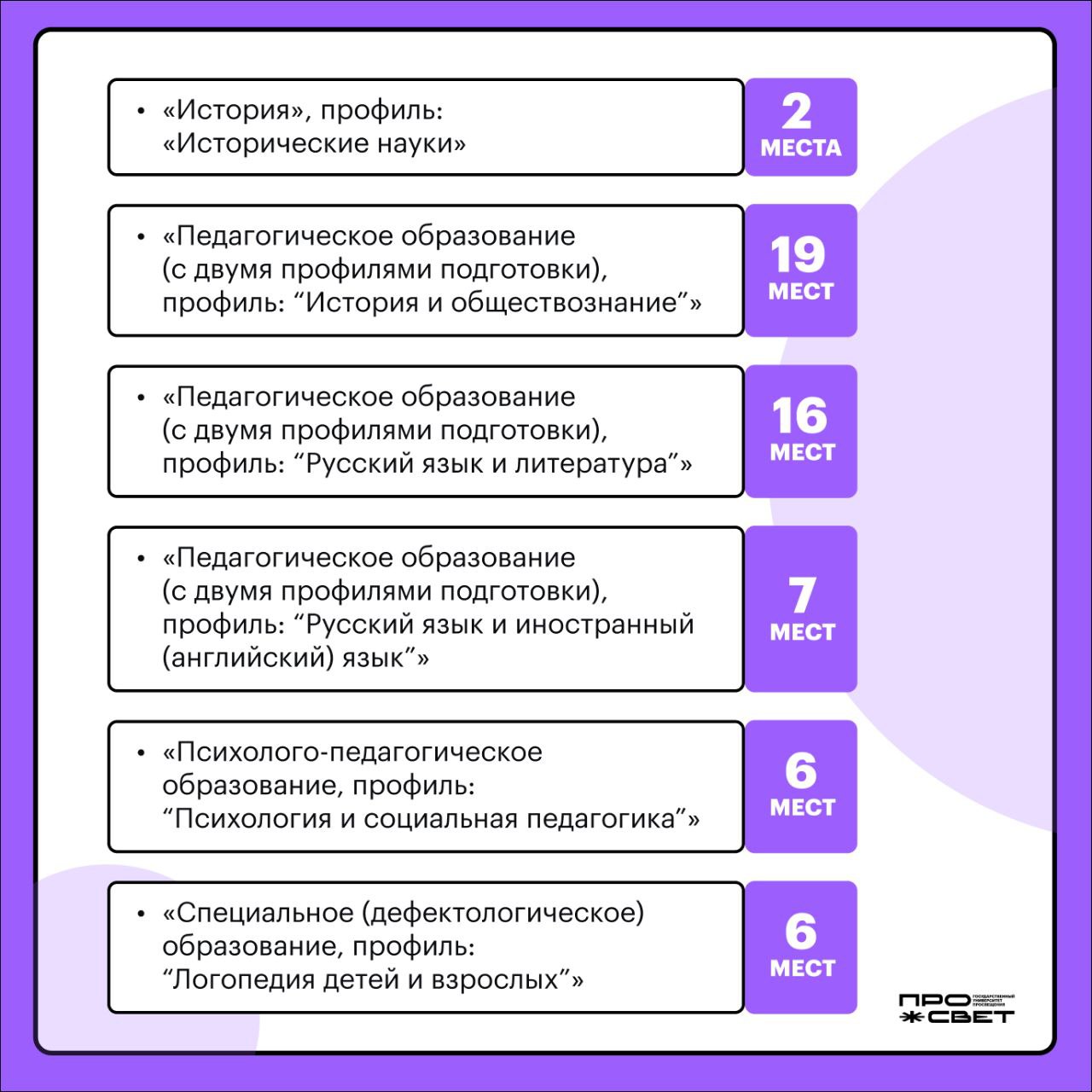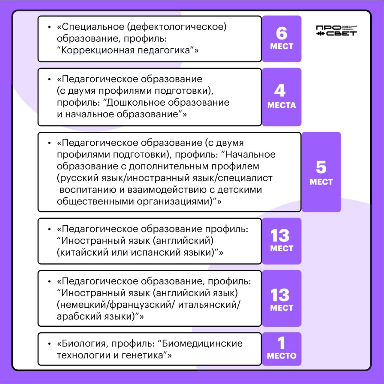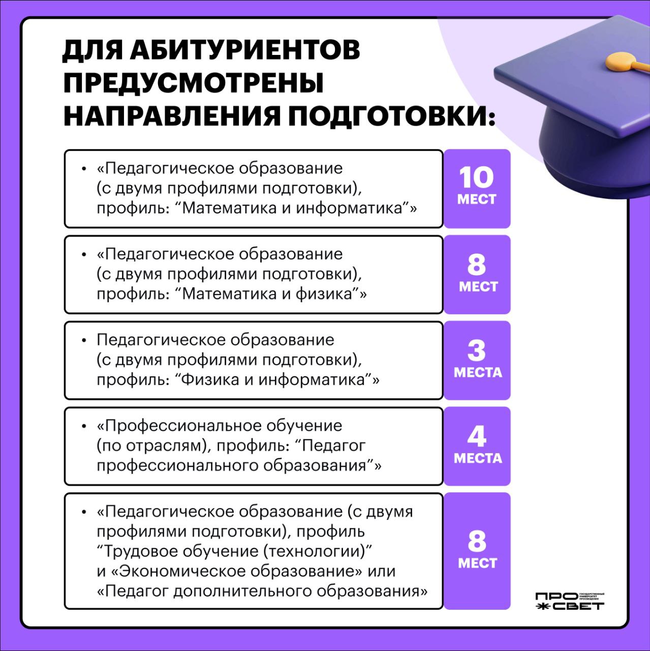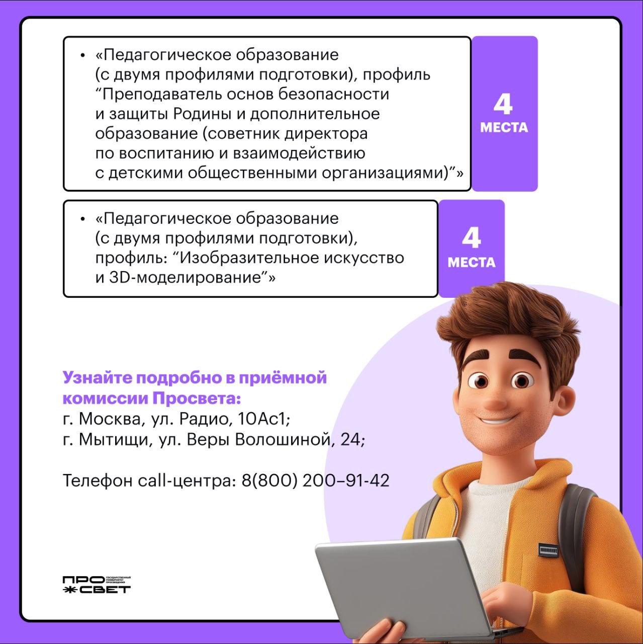 Просвет предлагает абитуриентам востребованные специальности. Выбирайте направления и осваивайте сразу 2 профиля!