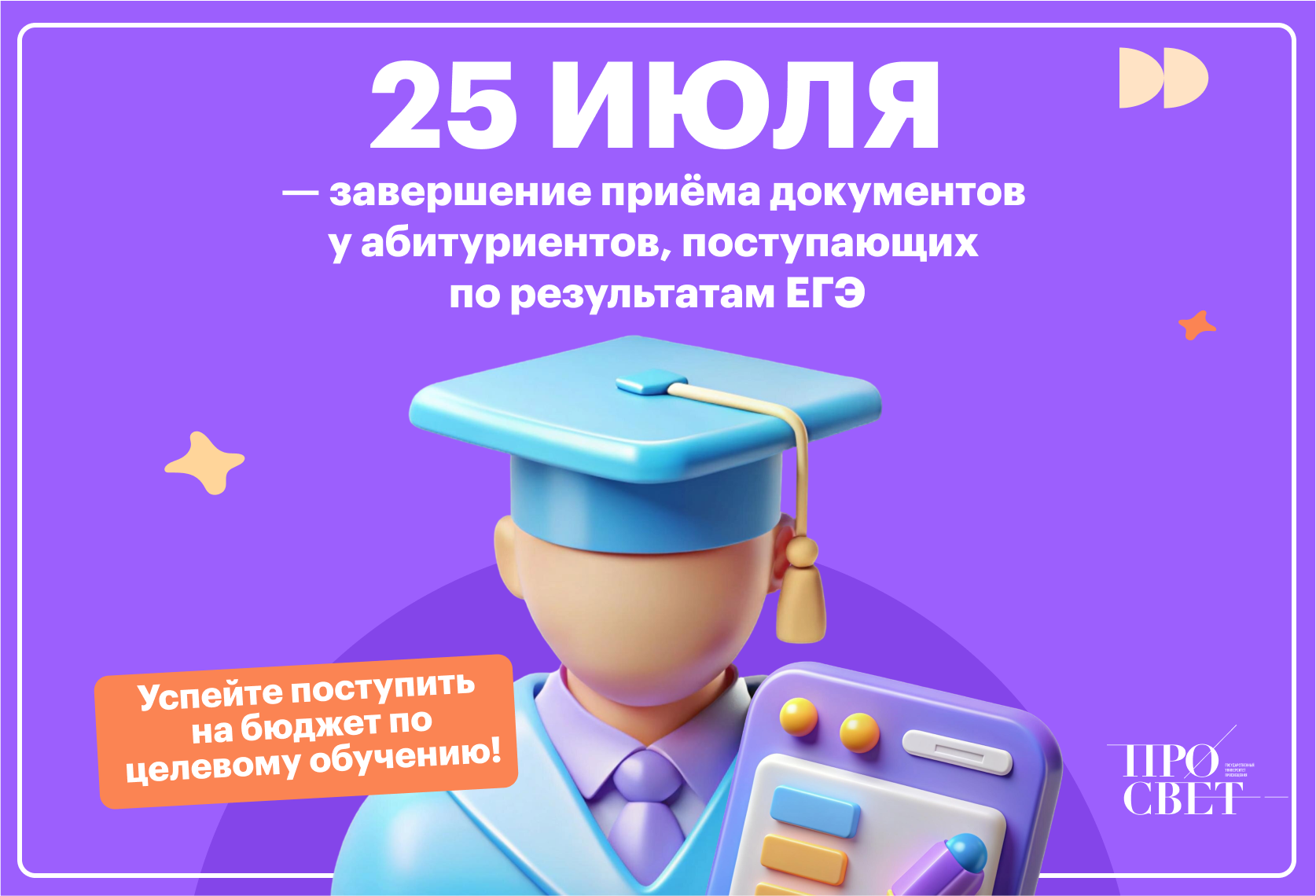 25 июля завершается приём документов на бюджет по направлениям бакалавриата/специалитета.