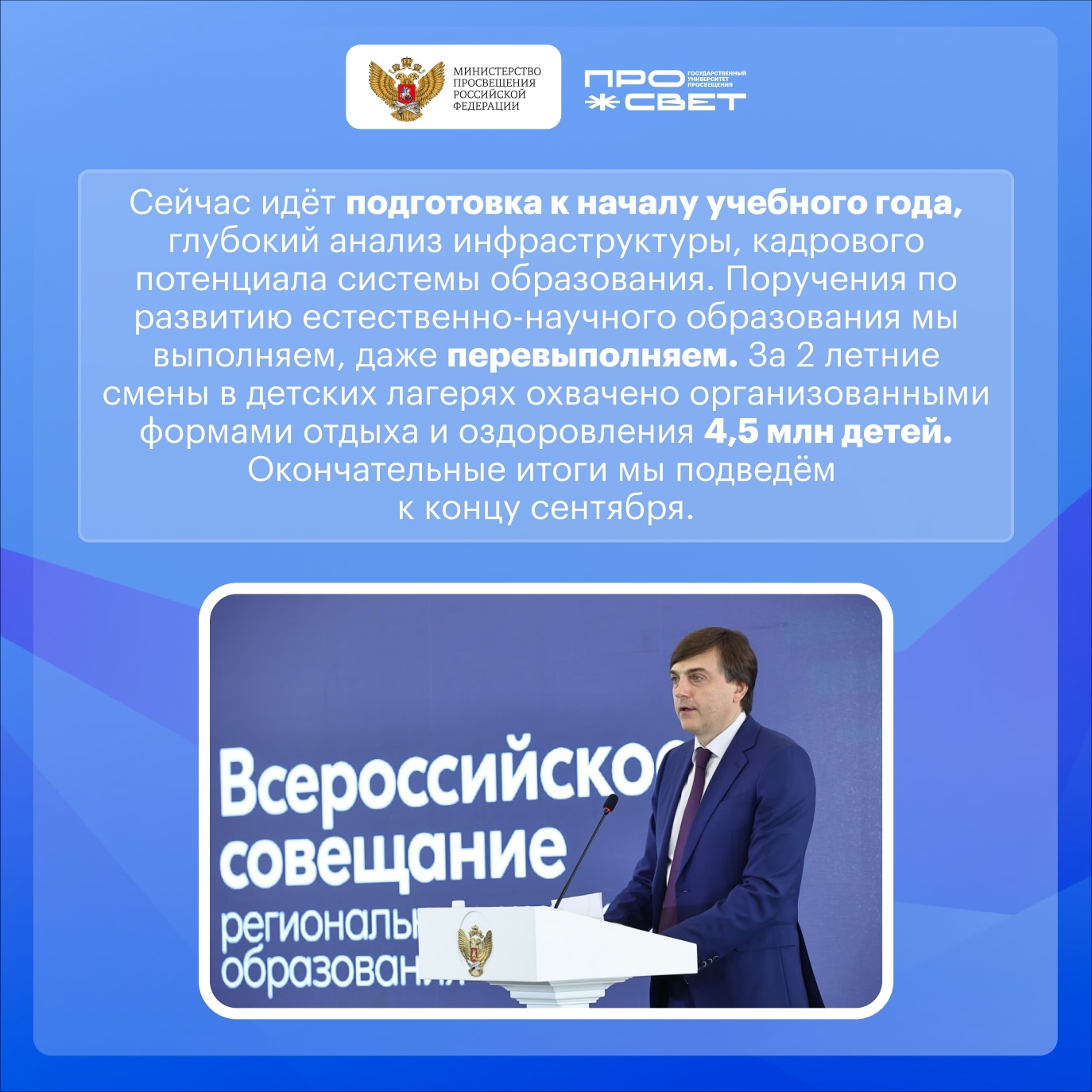 Вице-премьер Дмитрий Николаевич Чернышенко и министр просвещения Сергей Сергеевич Кравцов подвели итоги насыщенного учебного года и поделились амбициозными планами, которые стоят перед системой образования.