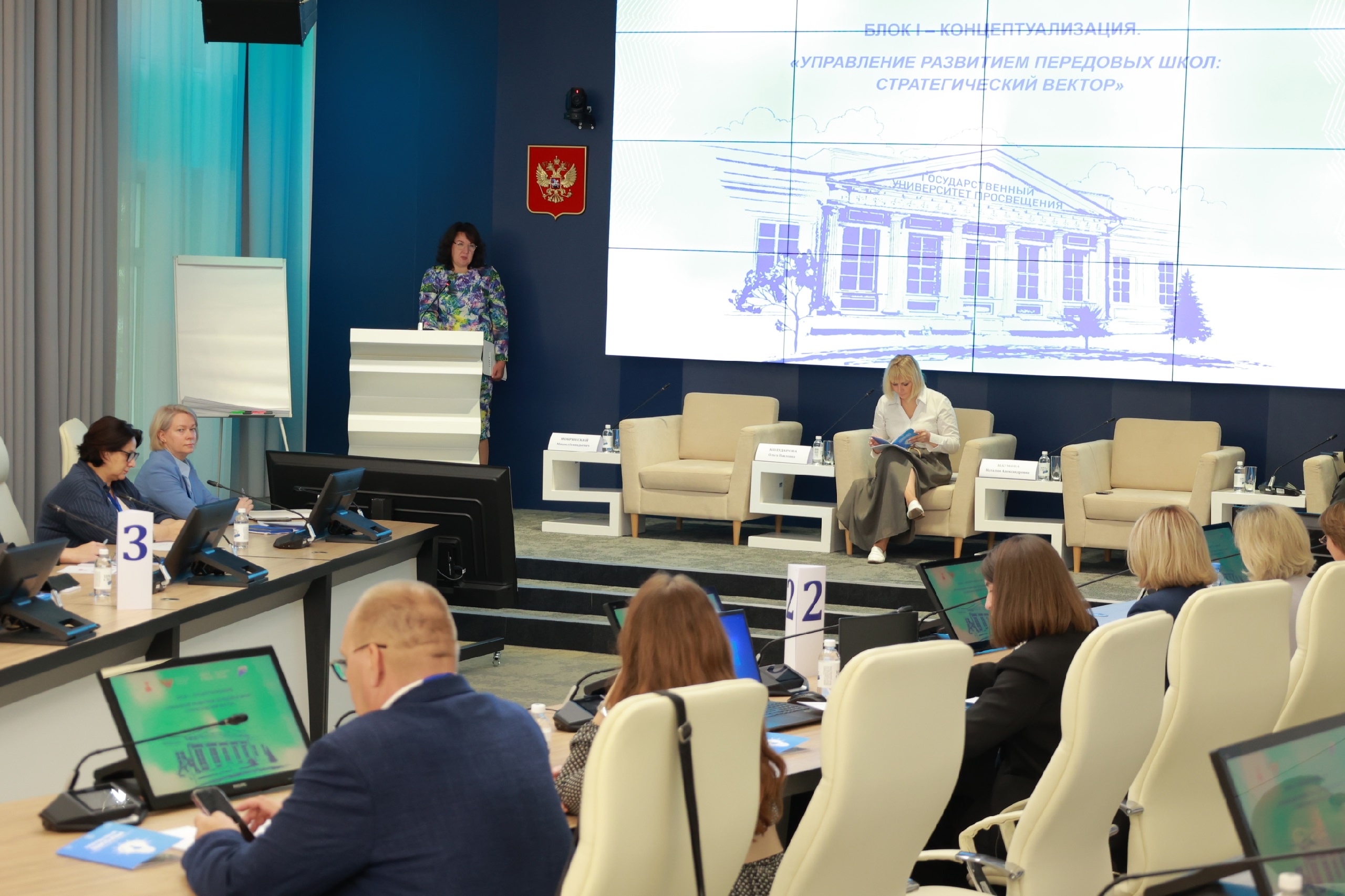 министром просвещения России Сергеем Сергеевичем Кравцовым и заместителем министра просвещения Ольгой Павловной Колударовой.