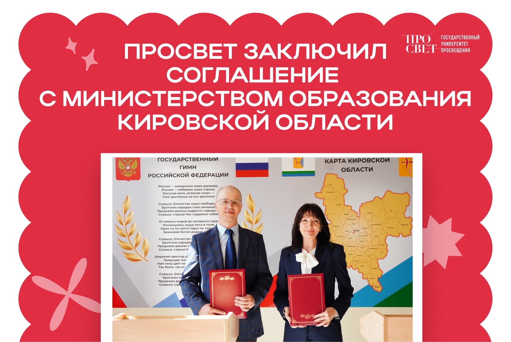 Подписи под документом поставили первый проректор — директор Института реализации государственной политики и профессионального развития работников образования Просвета Евгений Юрьевич Малеванов и министр образования Кировской области Наталия Александровна Бастрикова.